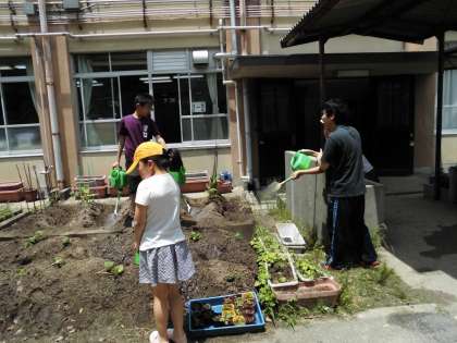 育てている野菜の世話をしました。