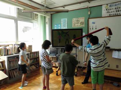 朝の会後,体を動かしています。ビデをを見ながらリズムよく踊ります。