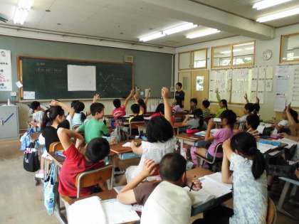4年1組は,理科で電気の働きの実験をしました。算数は,折れ線グラフで多くの子が意欲的の手を挙げていました。音楽は,リズム打ちをしました。