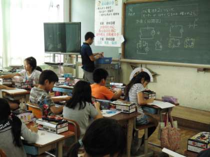 3年2組は体育の「リレー」の授業で,走る順番やバトンパスの仕方を工夫して,競争することを楽しみました。4年1組は理科の「電池のはたらき」の授業で,電池のつなぎかたによって,モーターの動きがどのように変わるのかを実験で確かめました。4年2組は音楽の「拍の流れにのって」の授業で,一つの言葉を素材として,グループでリズムアンサンブルをつくりました。