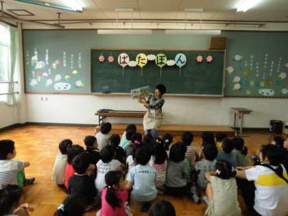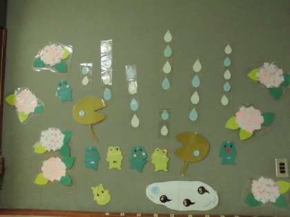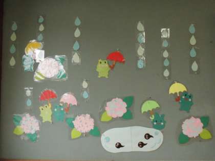 6月7日(火)中間休み,ぱたぽんの読み聞かせが行われました。梅雨入りに合わせて北きらめきルームも季節感にあった掲示がされています。