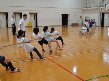 今日の放課後は,教職員のみなさんを対戦相手に,綱引の練習をしました。