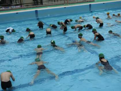 水に顔をつけたり,クラゲになって水に浮かんだりしました。