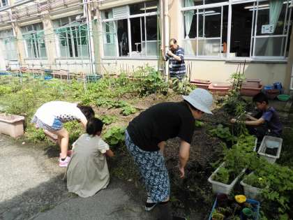 育てている野菜が実をつけました。雑草を抜いて,大きく育てたいです。