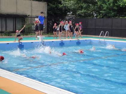 5年生は,「去年よりも長い距離を泳げるようになろう」と,25メートルコースを使って泳ぐ練習をしました。