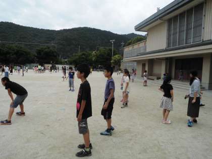 運動場では,月曜日から始まる運動委員会主催のドッチボール大会に向けてあちこちで練習していました。