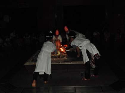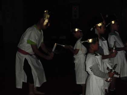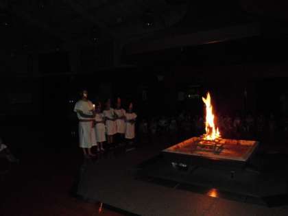 キャンプフャイヤーの初めに火の神が登場して,火の子に「知恵・優しさ・勇気・友情」の火を分け与えました。
