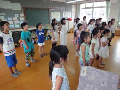 3〜6年生の27名が所属する「音楽教室部」は,毎週火曜日と金曜日の放課後,練習をしています。昨日は,二部合唱の練習をしていました。「歌いだしの言葉をはっきりと発音すること」「音符の長さに気を付けて,正しく伸ばすこと」「強弱の意味を考えながら,抑揚をつけて歌うこと」など,気を付けることを確認しながら練習に励んでいました。