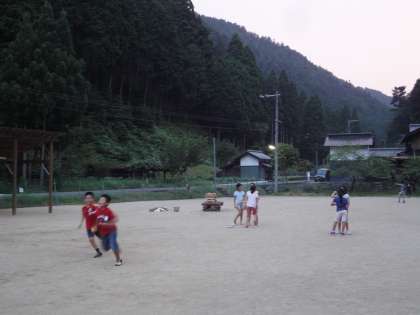 夕飯の後は,グランドに出て,自由遊び。夕日が沈んで暗くなるまで,走り回っていました。