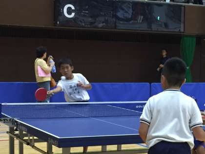 六年男子です。六年生は出場者数が多いのですが,自分たちで審判・得点などの役割分担をしながらスムーズに進行しています。