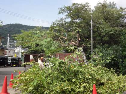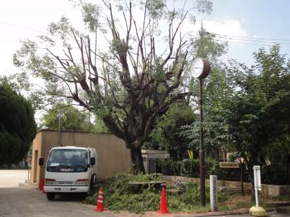 夏休みの期間中に,正門付近や校庭回り,東門付近の樹木を剪定してもらいました。