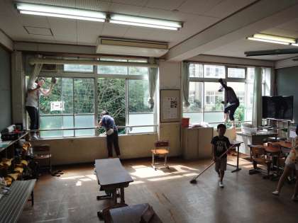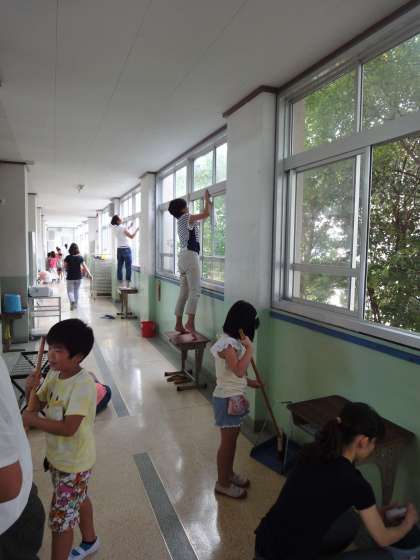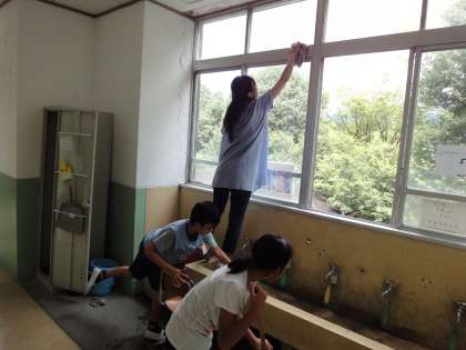2時間目は,保護者の方と一緒に大掃除をしました。普段手が届かない高い窓の枠や黒板の上など,保護者の方がきれいに掃除をしてくださいました。掃除用具の使い方や掃除のコツなども教えていただき,子どもたちは笑顔で掃除をしていました。