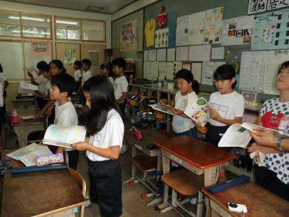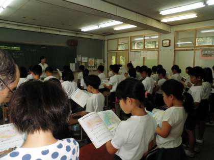 4年2組で,音楽をしました。「風のメロディー」をきれいな声で歌いました。