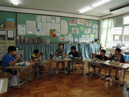 6年生が給食を持ってあおぞら学級に来てくれました。運動会で頑張ることを話し合いました。その後,一緒に遊びました。