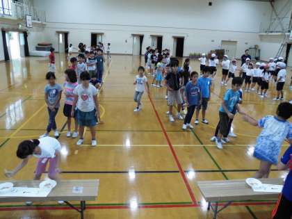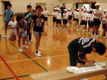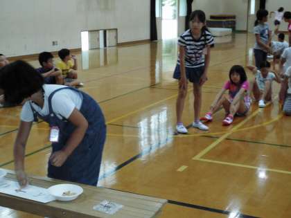 「うまく豆をつかめているかな」と,順番が前の子の様子をちらちらと気にしたり,わくわくしたりしていました。