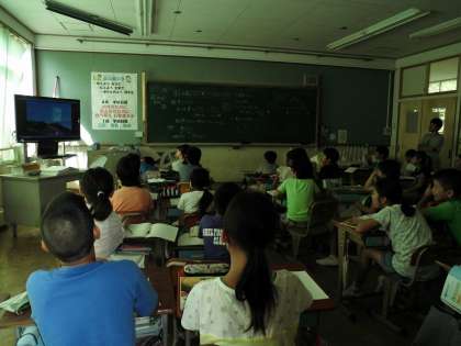 4年1組は「月や星」で,月の動きを映像で確認しました。2組は「私たちと体と運動」で,関節の動きについって学習しました。