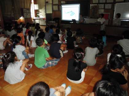 「生物の進化の歴史」と「多様性」「絶滅危惧種」の話を映像を見ながら聞きました。