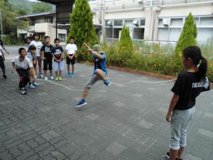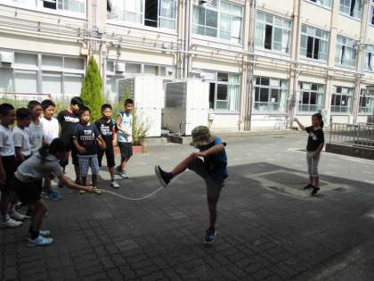 5年1組のみんな遊びに誘われて,大縄を楽しみました。
