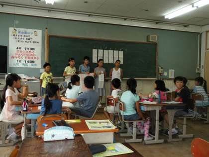 夏休みに取り組んだエコライフチャレンジのまとめをグループでしました。その後に。これからのエコライフチャレンジの目標を決めて,みんなの前で発表しました。