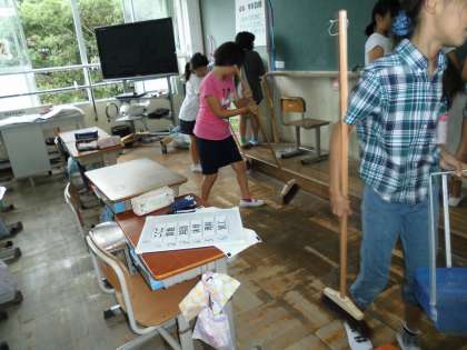 4年2組に交流掃除に行きました。ほうきの使い方を教えてもらって丁寧にはいていました。
