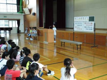 9月14日(水)きらめきタイムで4年生が発表しました。4年生は自分にとって大切なものというテーマで発表の内容を考えました。