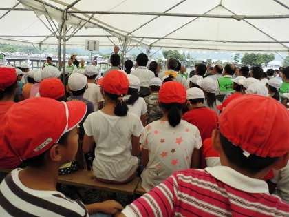 見学の後に,式典に参加しました。帰校してから,区役所に方から水災害の時の避難の方法のついての話を聞きました。