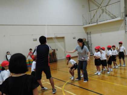 9月20日(火)台風接近に伴い雨が降っているので,体育館で運動委員会主催の大縄大会(1組)が実施されました。