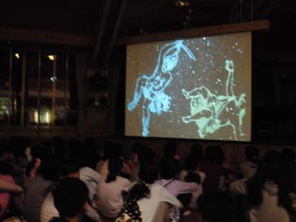 残念ながら雲が出ていて天体望遠鏡を使っての観察はできませんでした。代わりにオリエンテーションホールで「バーチャルプラネタリュウム」の映像を見て,秋の星座について学習しました。
