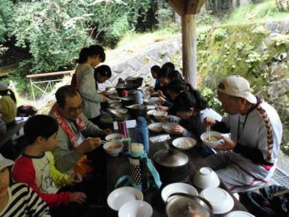 できあがった豚汁は少し味は濃い目でしたが,とてもおいしかったです。ごはんも柔らかく炊き上がっていました。