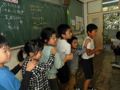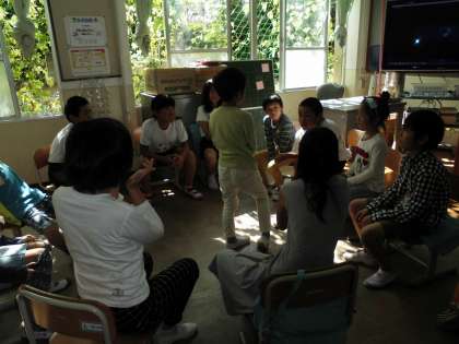 中間休みは,縦割り班での遊びです。いすとり・じゃんけんれっしゃ・なんでもバスケットをしました。