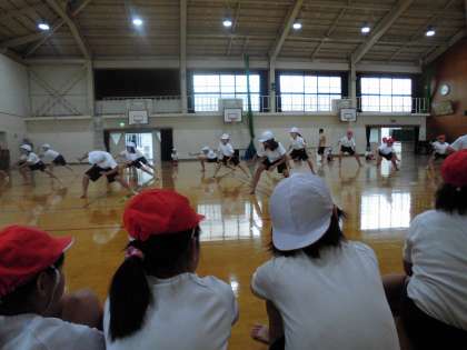 ソーラン節は,目線を意識して踊ると生き生きすることを教えてもらって,それに気を付けて踊りました。今日は,お互いに見合っていいところを見つけて発表しました。