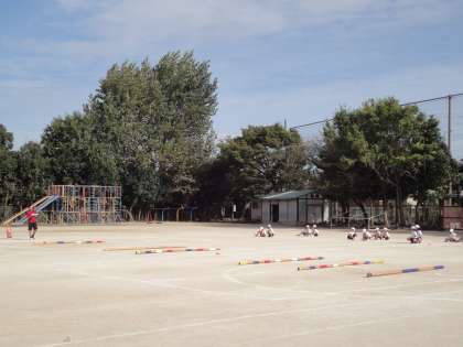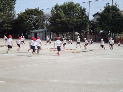「よーい,どん!」の合図で,棒をめがけて全速力で走ります。