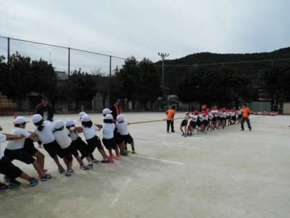 選択種目「綱引き」の練習をしました。高学年・低学年の部どちらも赤組が勝ちましたが,運動会では白組のリベンジを期待しています。