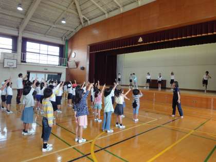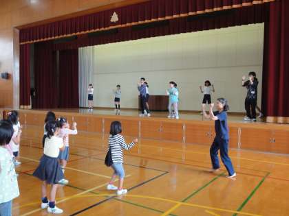 運動会の全校ダンス係は,見本となるよう,ステージの上で踊ります。