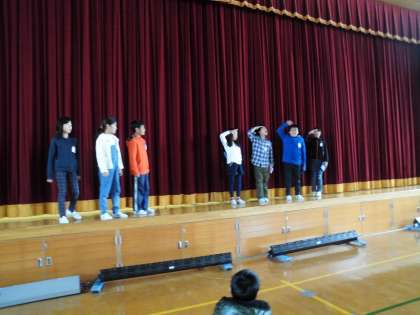 教室での練習で,場面ごとにしてきた細かい動きの成果を舞台の上で出し合いました。