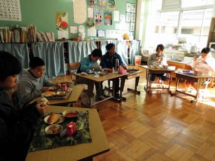 6年生が,給食を持ってあおぞら学級に来てくれました。話題は,6年間で楽しかったことです。修学旅行・山の家があがっていました。昼休みは,3組の部屋で遊びました。