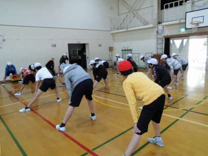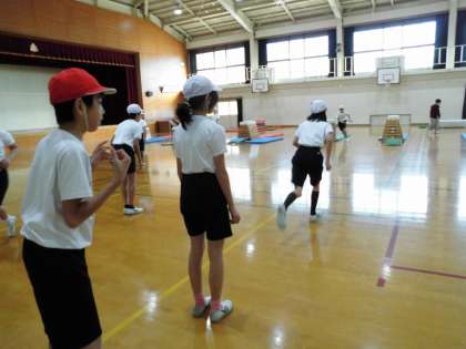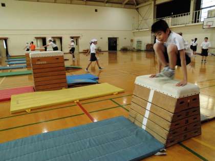6年2組の跳び箱学習に参加しました。準備運動をしてから出来る技に挑戦です。