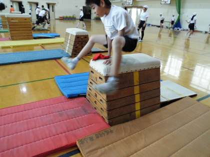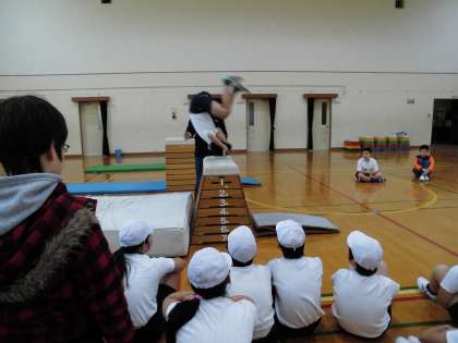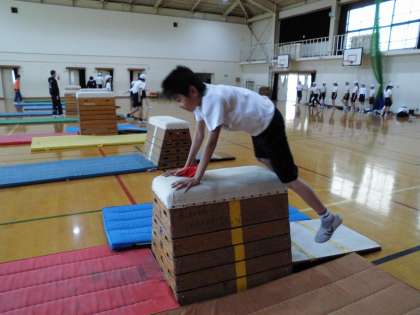 開脚跳びにも挑戦しました。その後,ヘッドスプリングに挑戦している子をみんなで見ました。