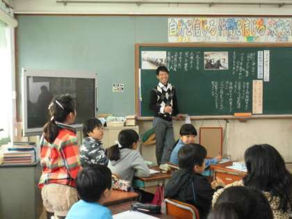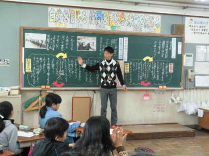 12月8日(木)5校時,5年2組で「世界が絶賛する7分間」という資料を使って,人のために働く素晴らしさやそこから得られる「満足感」「充実感」に気づき,進んで人のためになる仕事をしようとする心情と実践意欲を育てていきたいというねらいで道徳の授業が行われました。