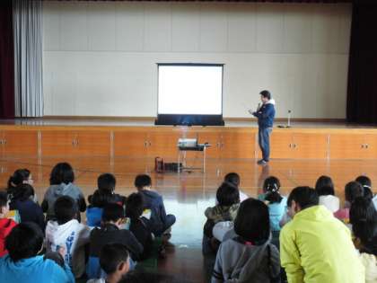 12月9日(金)5,6校時,体育館で5年認知症サポート教室が実施されました。初めに認知症とはどのようなものでどのようにして発症するのか説明がありました。