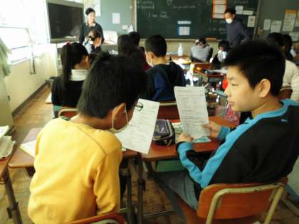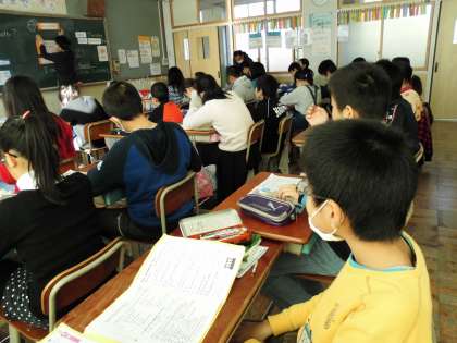 6年生の小中連携英語は,「〜できますか」を英文で書いてあるのを読んで,隣の人と言い合いしました。