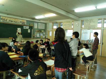 松尾中学校の先生に来ていただいて,英語の学習をしました。先生の英語の質問に英語で答えた後,カードでビンゴゲームをしました。