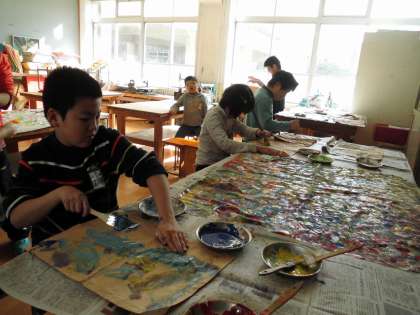 校内図工展に向けて,立体作品のライオンを作っています。鬣の模様を描きました。