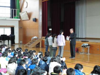 その後,学校長から卓球の全市交流会で活躍した選手や書初め展で入賞した児童に表彰状が渡されました。