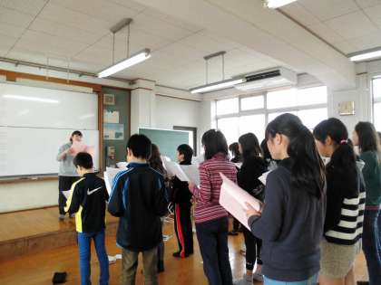6年生の音楽は,卒業式で歌う「明日の空へ」の練習をしました。二部合唱で各パートに分かれて練習してからみんなで合して歌いました。