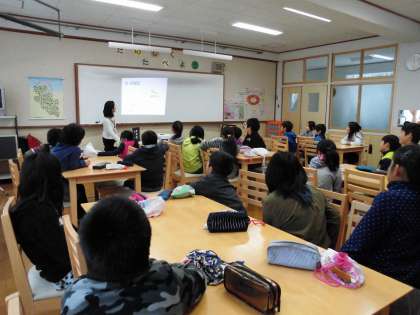 ランチルームでカルシウムについての話を聞きました。給食の献立は,カルシウムの摂取量も考えて作成されていることが分かりました。