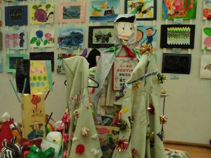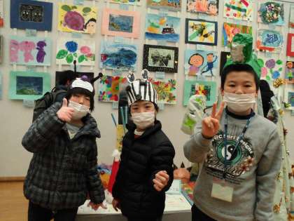 小さな巨匠展の鑑賞に,市バスに乗って出かけました。まず,自分たちが作ったマント屋さんへ行きました。