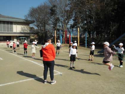 1年2組では,なわとびでいろいろな跳び方に挑戦しました。