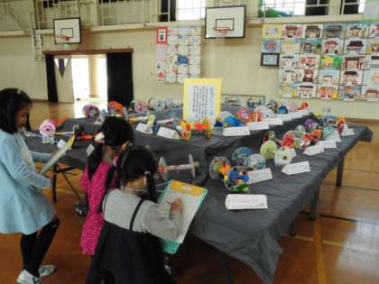 1年生は図工展鑑賞の時間に,それぞれの作品のいい所を見つけてワークシートに書いていました。