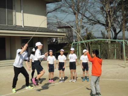 京都府ダブルダッチ協会から講師の方に来ていただいて,ダブルダッチの学習を行いました。新しい競技のやり方を教えてもらったり,すばらしい技術にふれたりして子ども達も楽しい体験ができました。